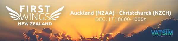 For this edition, we will be flying in New Zealand. A city shuttle First Wings Event will be held on December 17th, between the airports of Auckland (NZAA) and Christchurch (NZCH), departing Auckland between 0600 and 0845 UTC, and Christchurch from 0600 until 0830 UTC.