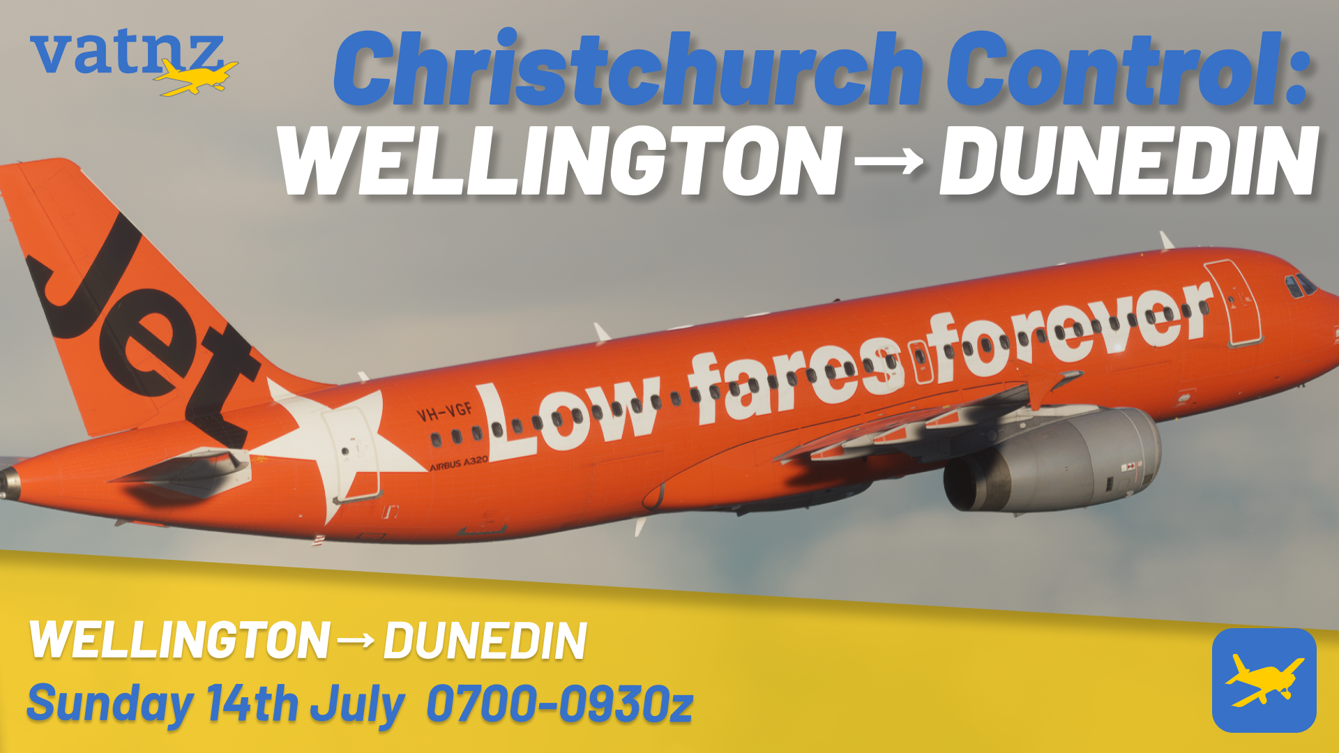 This week, we're continuing our trial of the new event format. For this, movements will be focused between Wellington and Dunedin. This does not mean you have to fly between the two, but we're hoping you'll enjoy the higher traffic at these airports and show some love to our other airports.