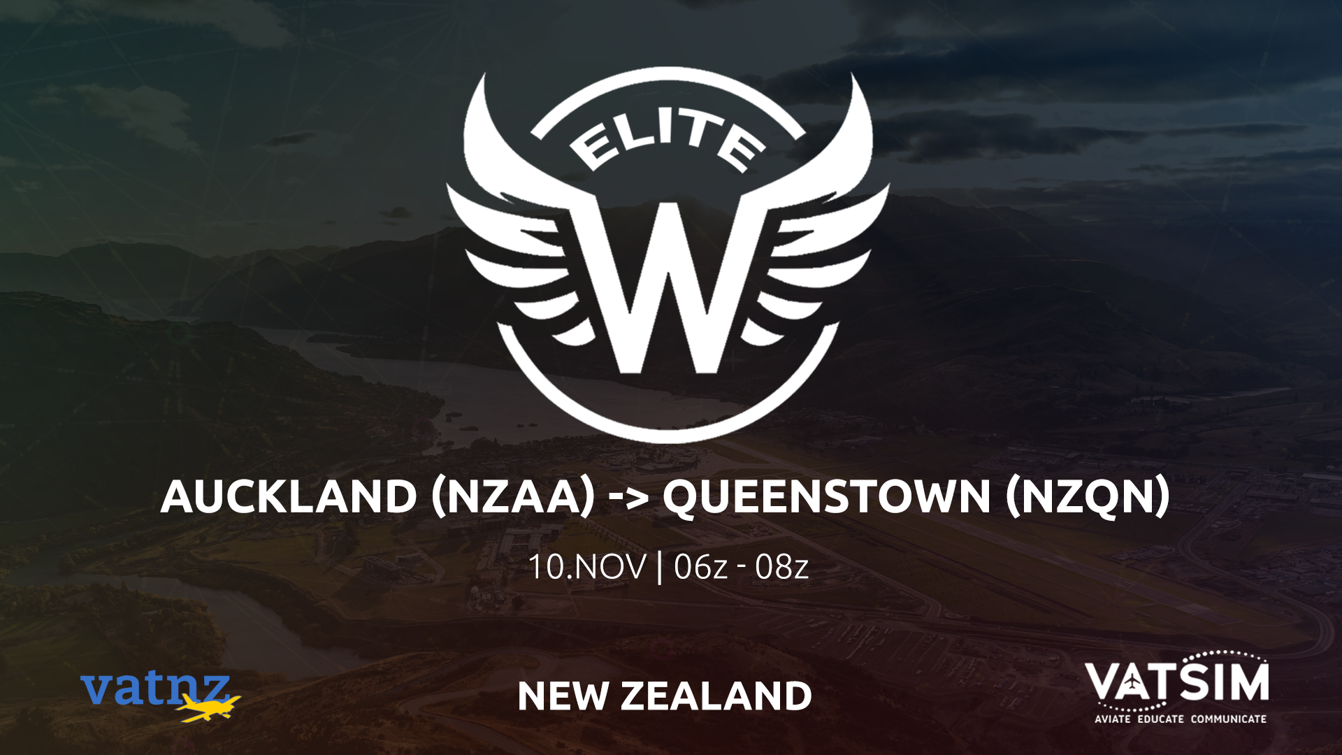 Get ready for the next exciting chapter of VATSIM's Elite Wings series! This edition will take you to the stunning landscapes of New Zealand, as you fly one-way from Auckland (NZAA) to Queenstown (NZQN) on 10 November 2024, with departures scheduled between 06:00 and 08:00z.