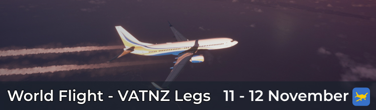 After a short break, World Flight has returned to VATNZ airspace. We are featured very heavily this year, with four of our airports being visited across 28 hours on the 11 and 12 of November.
