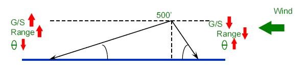 The opposite happens with a tailwind. Our groundspeed will be much higher and therefore we cover more distance across the ground as we descend thus reducing the glide angle. This needs to be taken into account when planning the top of descent point. It is also important when trying to fly a fixed angle descent such as an ILS approach.